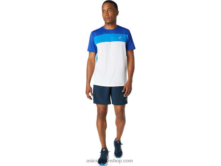 ホーム| 男性| 衣類| Tシャツ&トップス| メンズレース半袖トップ L20V1745Asics ブリリアントホワイト/モナコブルー